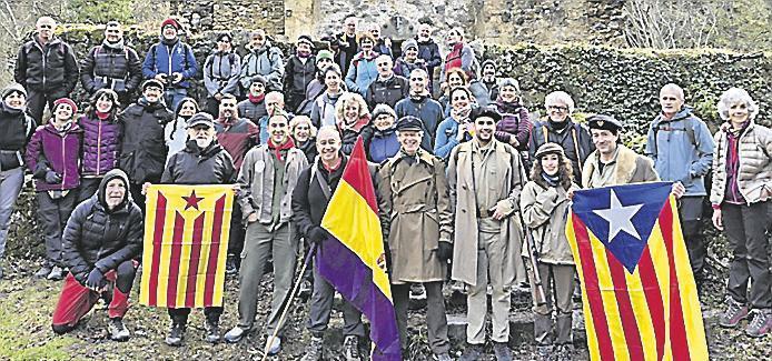 Une quarantaine de Catalans du sud de la Marxa republicana de 1939 à la Garrotxa ont suivi les chemins empruntés par les 7 000 réfugiés ayant franchi la frontière en hiver 1939 pour fuir l’Espagne. Ils sont partis du refuge de Sant-Aniol-d’Aguja, en Catalogne sud. Ils ont été rejoints à la ferme en ruines de la Muga par Maryse Agont, la secrétaire de l’association culturelle catalane, qui les a accompagnés jusqu’à Saint-Laurent. Ils ont fait une pause à Pla Castanyer (hameau de Villeroge), où Michel Anrigo, ancien maire de Coustouges, leur a adressé quelques mots.