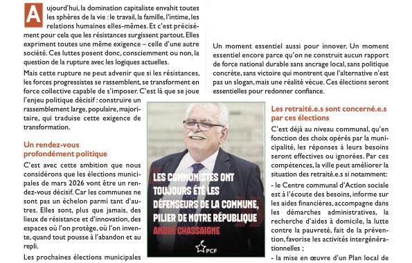 Et il conclut sur l’importance « d’écouter, dialoguer, associer les habitants, maintenir ce lien simple et essentiel qui permet à chacune et chacun de prendre part à la vie collective. Avec engagement et proximité, je souhaite poursuivre ce chemin avec vous, au service de notre commune et de celles et ceux qui y vivent ».
