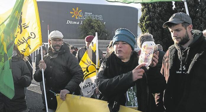 C’est sur la jonction de deux histoires que la Confédération paysanne a décidé de mener des actions hier matin dans les Pyrénées-Orientales. « Nous sommes là pour la défense de l’autodétermination du peuple sahraoui et le combat des producteurs français qui vivent une concurrence déloyale face à des importations prétendument marocaines, comme là chez Azura, alors que clairement les tomates qui arrivent ici sont produites au Sahara occidental », introduisait Fanny Metrat, porte-parole de la Confédération paysanne nationale.