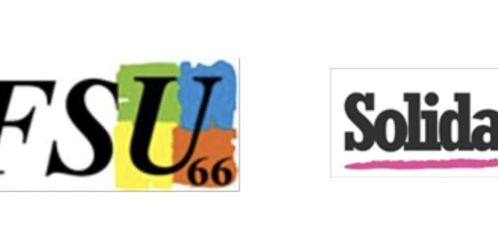 Communiqué intersyndical CGT66, FSU66, Solidaires 66. À quoi joue le préfet des P.-O. ? Posted on 4 février 20264 février 2026 by po communiqué intersyndical manif allianceTélécharger Posted in Département, Social and tagged CGT 66, Fédération Syndicale Unitaire (FSU), Union Syndicale Solidaires (SUD).